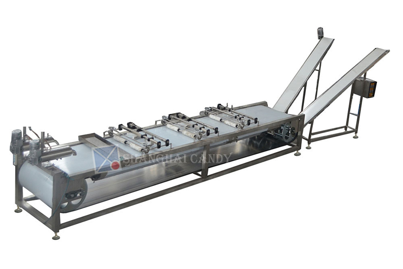 The line is mainly composed of vacuum cooker, batch roller, rope sizer, lollipop forming machine, transfer belt, 5 layer cooling tunnel etc. This line is characterized by its compact structure, less occupied area, stable performance, less wastage and high efficient production. The whole line is manufactured as per GMP standard, and in accordance with the requirement of GMP Food Industry. Continuous mirco film cooker and steel cooling belt is optional for full automation process.