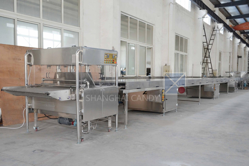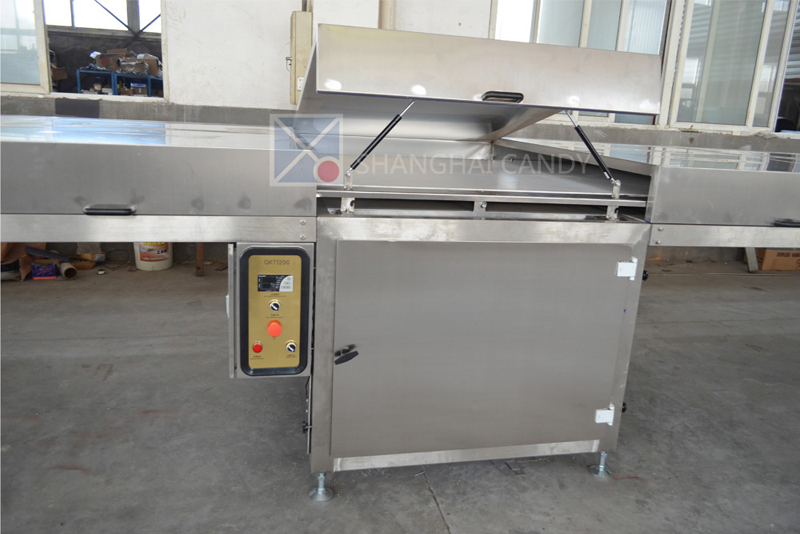 The enrobing machine is to coat chocolate on various food such as biscuit, wafers, egg-rolls, cake pie and snacks, etc. It mainly consists of chocolate feeding tank, enrober head, cooling tunnel.