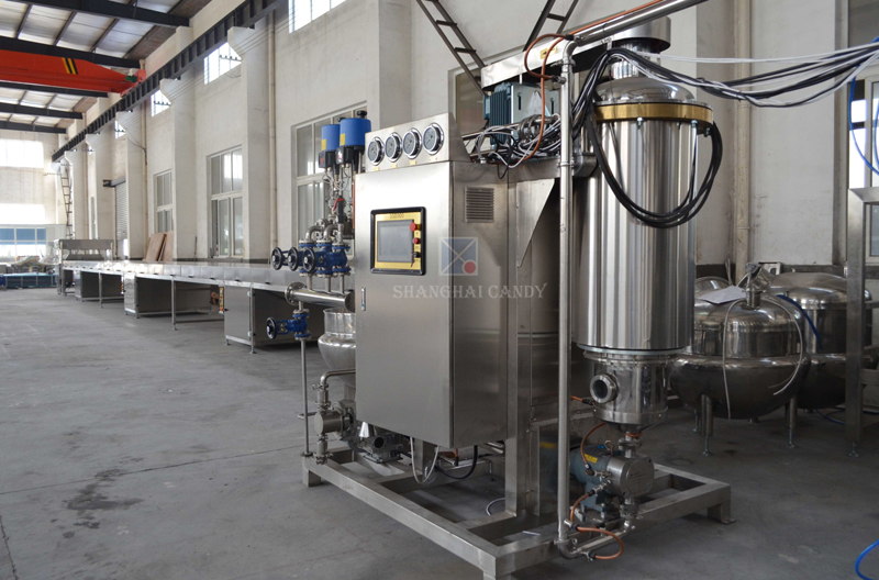 This unit consists of PLC control system, feeding pump, pre-heater, vacuum evaporator, vacuum pump, discharge pump, temperature pressure meter, and electricity box. All these parts are installed in one machine, and connected by pipes and valves. Flow chat process and parameters can be clearly displayed and set on touch screen. The unit has many advantages as high capacity, good sugar-cooking quality, high transparent of syrup mass, easy operation. It is an ideal device for the hard candy cooking.