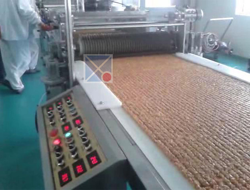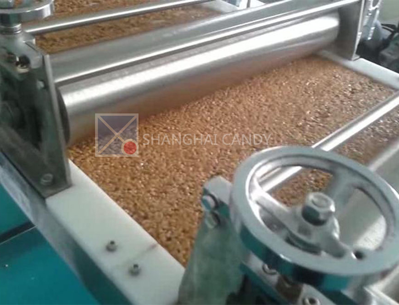 This line is used for the production of crisp peanuts candy. It mainly consists of cooking unit, mixer, press roller, cooling machine and cutting machine. It has very high automation and can finish the whole process from the raw material to final product once time, without destroy the product interior nutrition ingredient. This line has the advantages as proper structure, high efficiency, beautiful appearance, safety and health, stable performance. It is an ideal equipment which help to reduce production cost and produce high quality peanuts candy. Candy produced by this line has right balance of hardness and softness, good taste.